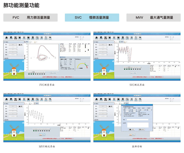 適用于呼吸內(nèi)科、胸科、職業(yè)病防治機構(gòu)、醫(yī)院體檢等,測量肺活量、用力肺活量、最大通氣量等肺功能通氣指標。