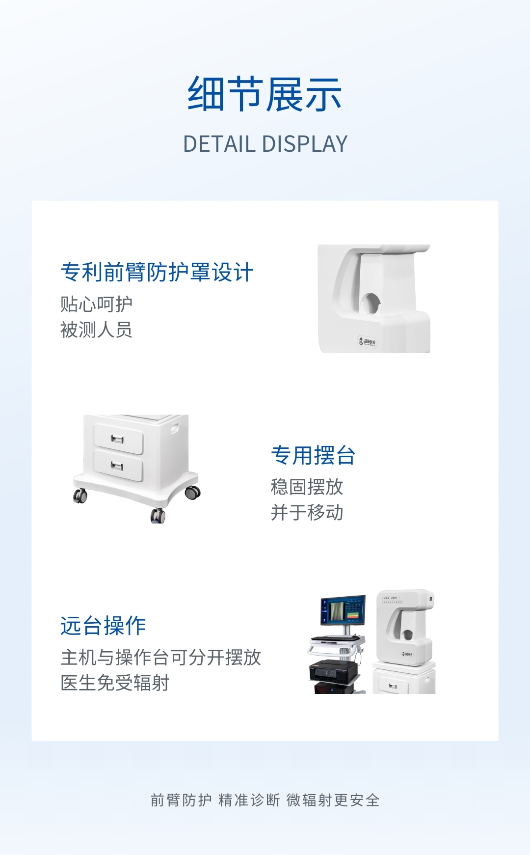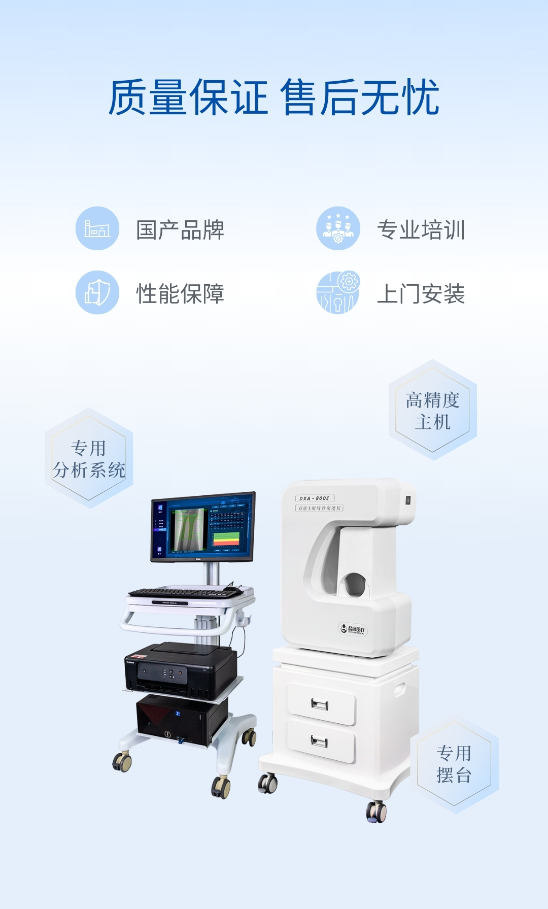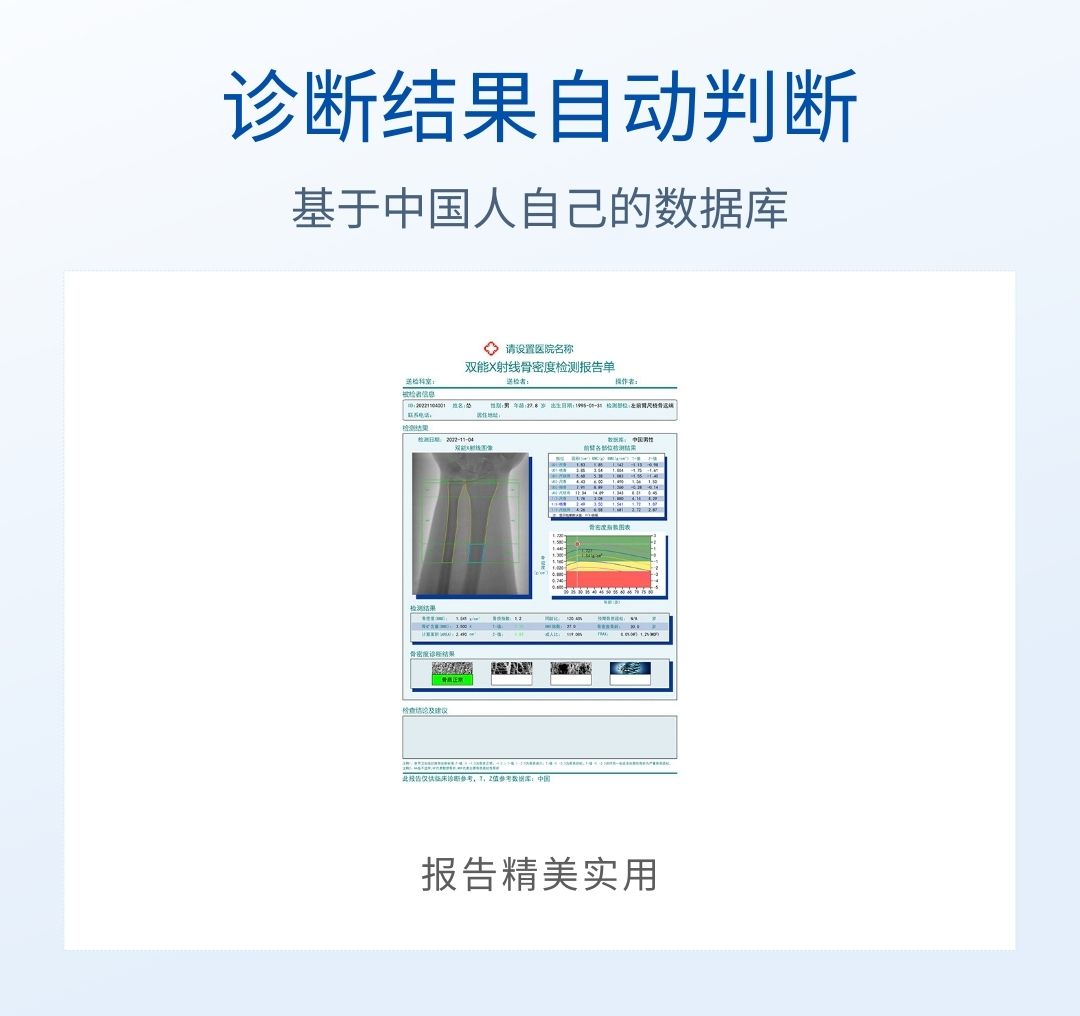 適用于骨科醫(yī)院、康復(fù)醫(yī)院、體檢中心、保健中心、老年病醫(yī)院、療養(yǎng)院、大型社區(qū)醫(yī)院,綜合醫(yī)院的內(nèi)分泌科、骨科、骨質(zhì)疏松科、老年病科、體檢科、康復(fù)科等。