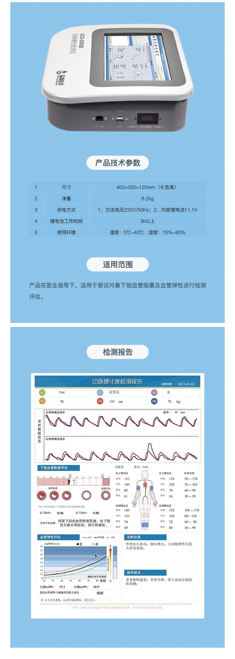 動(dòng)脈硬化檢測(cè)儀在臨床上被廣泛應(yīng)用于動(dòng)脈硬化的篩查和診斷。它可以用于評(píng)估患者的動(dòng)脈硬化程度和風(fēng)險(xiǎn),以制定更有效的治療方案。同時(shí),它也可以用于觀察患者的病情進(jìn)展情況,以及判斷治療效果。