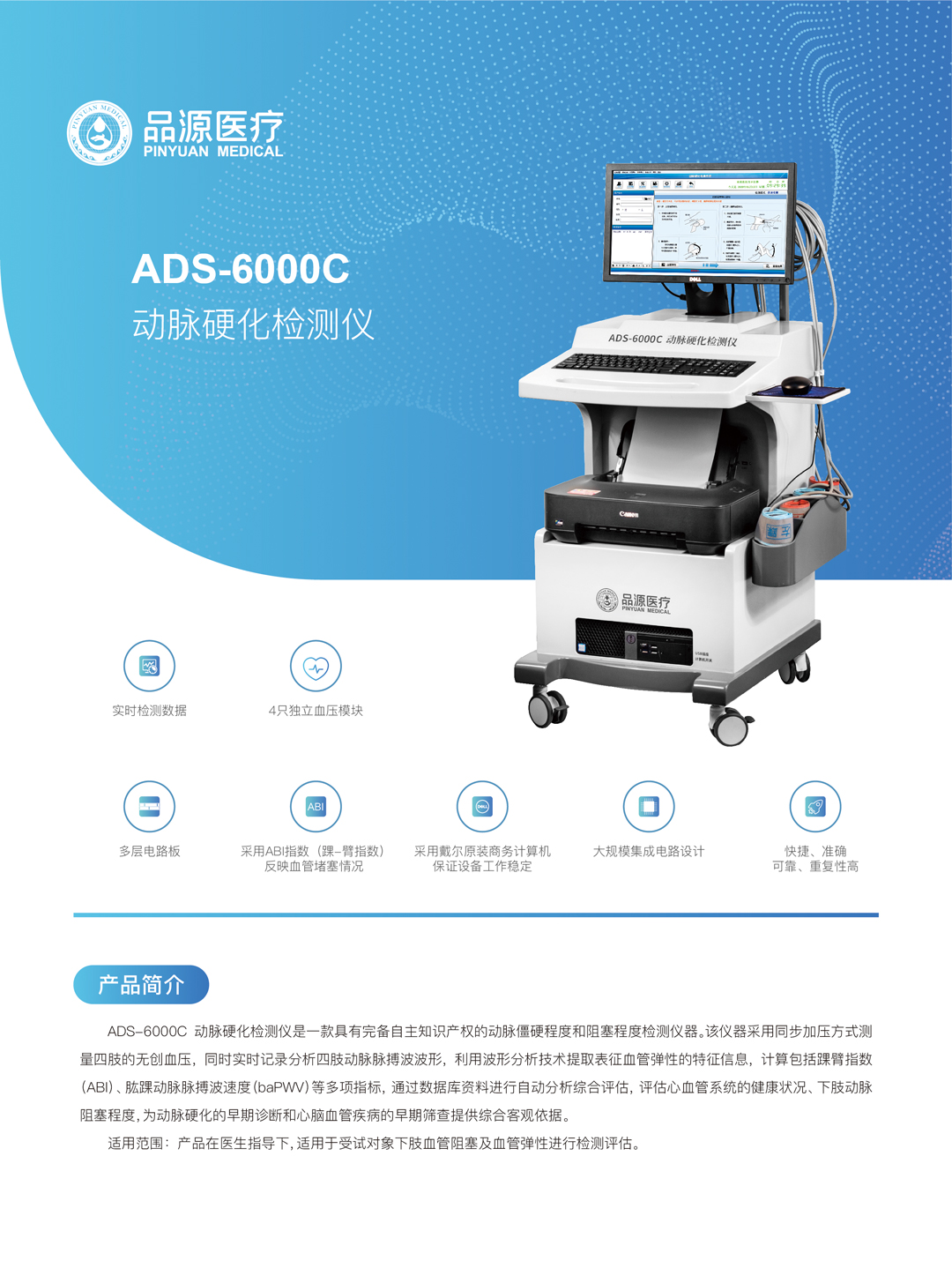 動(dòng)脈硬化檢測(cè)儀可以檢測(cè)動(dòng)脈的彈性、順應(yīng)性、血液流變學(xué)特性和血管形態(tài)等參數(shù),從而評(píng)估患者的動(dòng)脈健康狀況,提供預(yù)測(cè)心血管疾病的風(fēng)險(xiǎn)和病變程度的信息。動(dòng)脈硬化檢測(cè)儀在臨床醫(yī)學(xué)、生物學(xué)、生理學(xué)和流行病學(xué)等領(lǐng)域得到了廣泛的應(yīng)用。